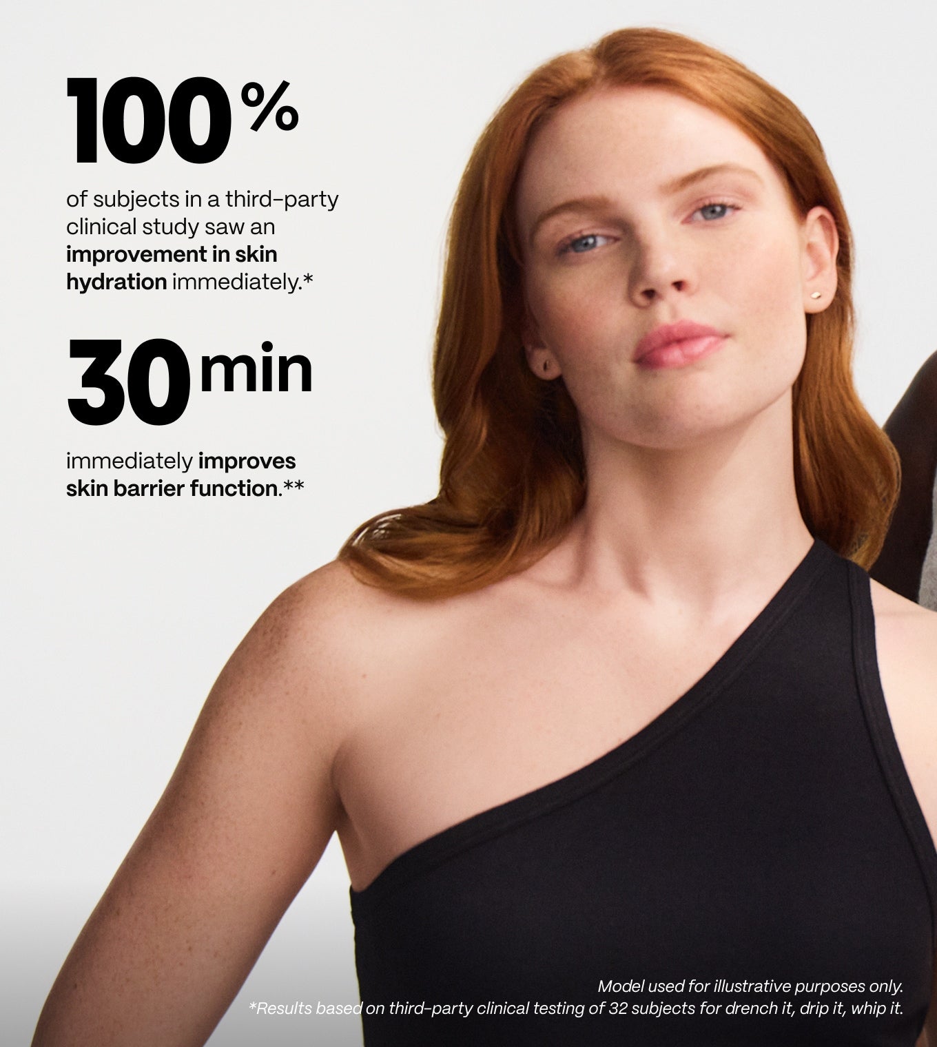 **Provides temporary repair to skin’s moisture barrier function in 30 minutes based on third-party instrumental transepidermal water loss test of 32 subjects.